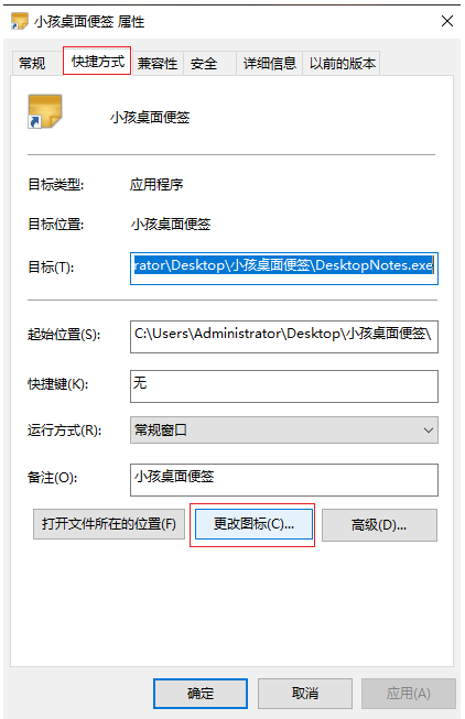 2.進入屬性界面,在【快捷方式】下點擊【更改圖標】