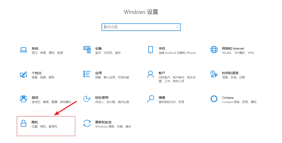 1.在鍵盤上按下【win+i】組合鍵,調出設置界面,然后選擇【隱私】。