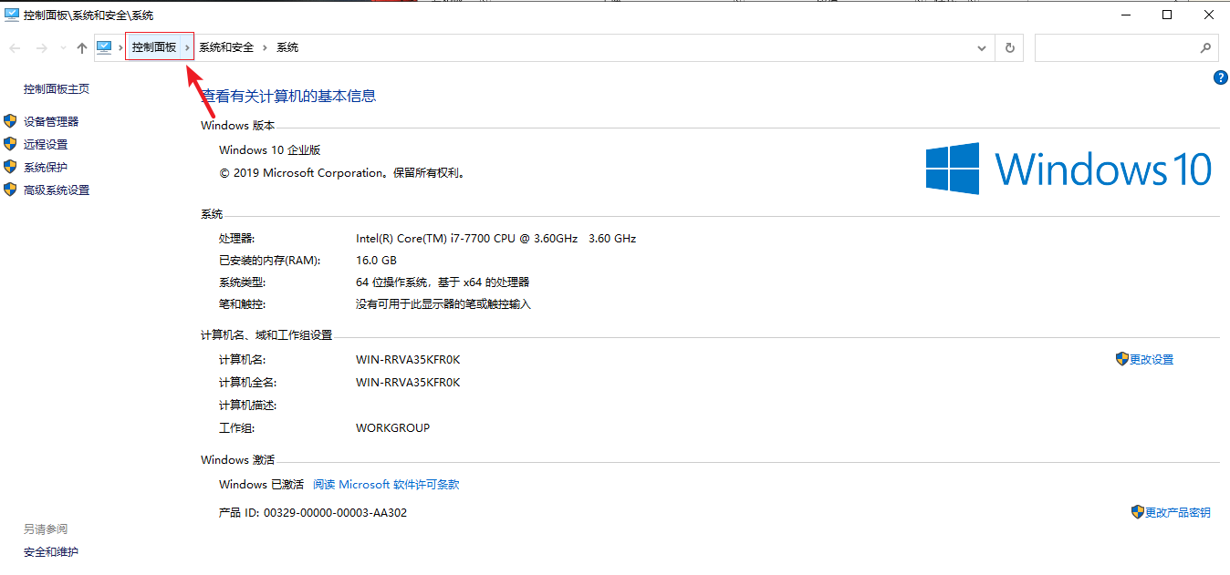 2.點(diǎn)擊進(jìn)入屬性后,在頂部選擇【控制面板】即可。