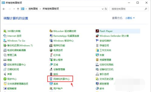 3.在彈出的頁面中找到并打開【網(wǎng)絡(luò)和共享中心】。