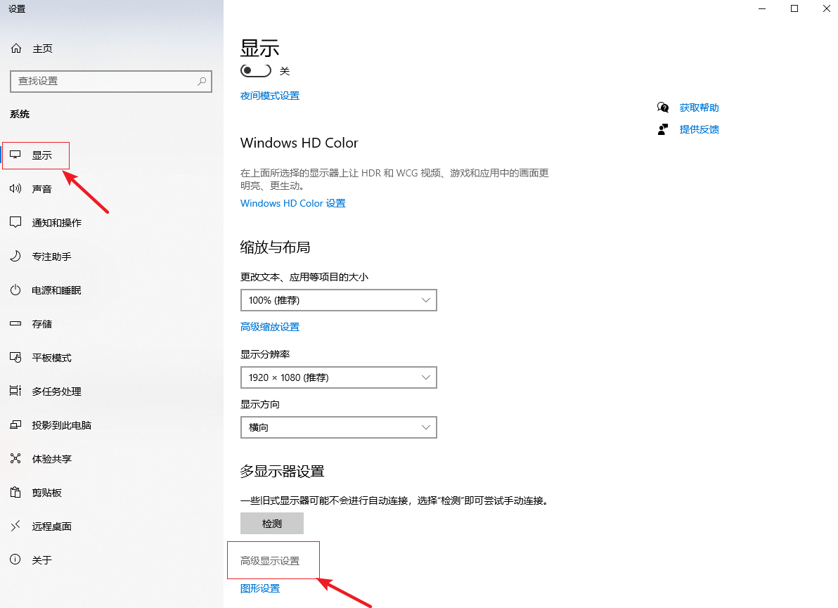 2.進入設置顯示界面,在右側點擊【高級顯示設置】。