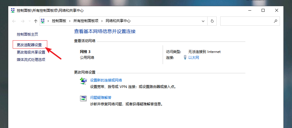 2.進(jìn)入后在左側(cè)選擇【更改適配器設(shè)置】。