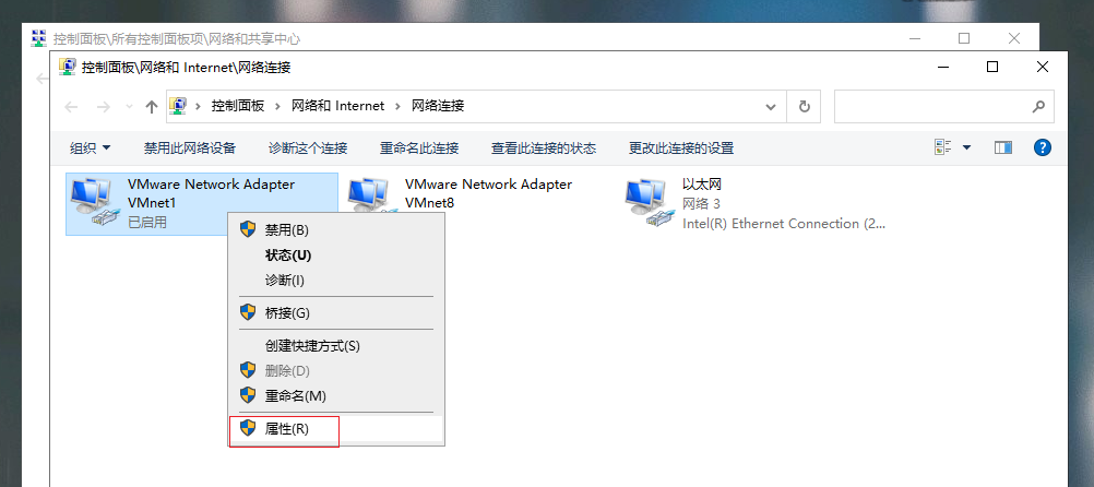 3.選擇正在使用的網(wǎng)絡(luò),右鍵選擇【屬性】。