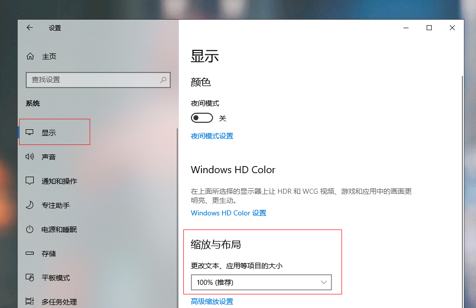 2.進入系統(tǒng)設(shè)置界面,在左側(cè)選擇【顯示】,把右側(cè)的【縮放與布局】下的數(shù)值改為100%就可以了。