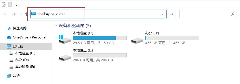 2.在上方的地址欄輸入【Shell:AppsFolder】,然后回車進(jìn)入。