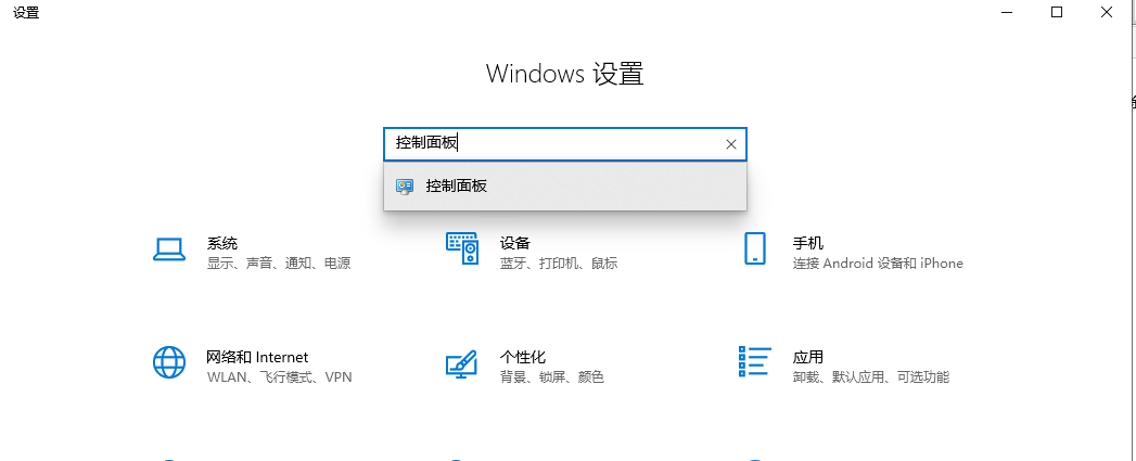 1.在設置選項界面的搜索框輸入【控制面板】。