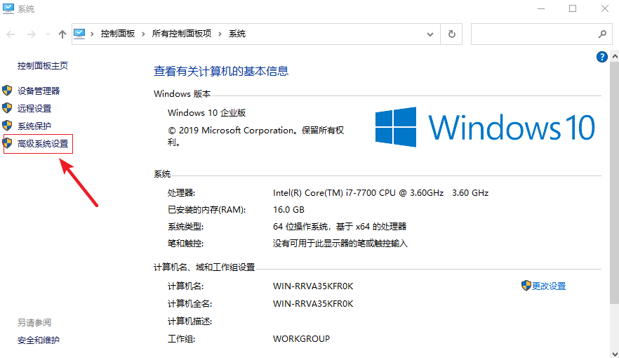 2.進入后,點擊【高級系統設置】。