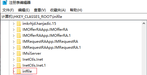 2.進入注冊表編輯器,在左側(cè)依次點開【HKEY_CLASSES_ROOT】-【lnkfile】。