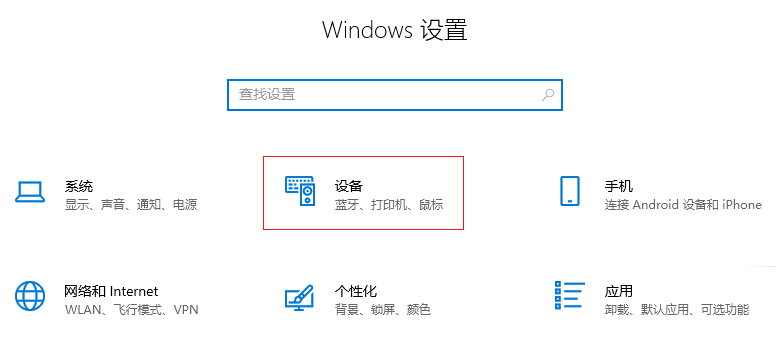 1.在鍵盤上按下【win+i】組合鍵,調(diào)出設(shè)置選項(xiàng)界面,選擇【設(shè)備】進(jìn)入。