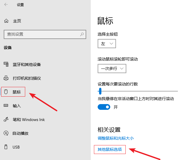 2.進(jìn)入后,在左側(cè)選擇【鼠標(biāo) 】,然后在右側(cè)點(diǎn)擊【其他鼠標(biāo)選項(xiàng)】。
