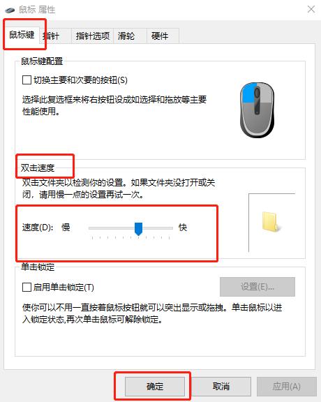 2.進(jìn)入后,上方切換到【鼠標(biāo)鍵】選項(xiàng),然后調(diào)整鼠標(biāo)雙擊速度,完了之后點(diǎn)擊【確定】。