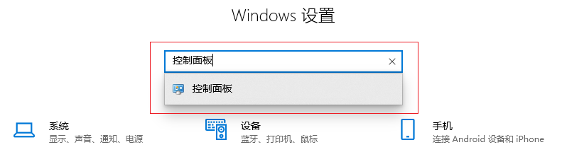 1.按下【win+i】,在設置選項界面的上方搜素框輸入【控制面板】,然后點擊打開。