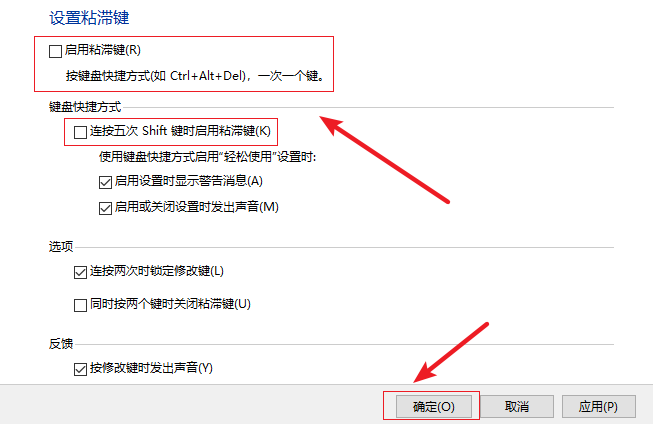 以上就是本次小編整理的關于win10的粘滯鍵如何取消的兩個方法,希望可以幫到你~電腦的粘滯鍵設置本身就是專門幫助同時按下兩個或多個鍵有困難的人,正常沒有這個需要的人使用這個功能確實會覺得煩,如果不屬于這個群體,不需要或者不喜歡這個功能的,趕緊來抄作業取消了!