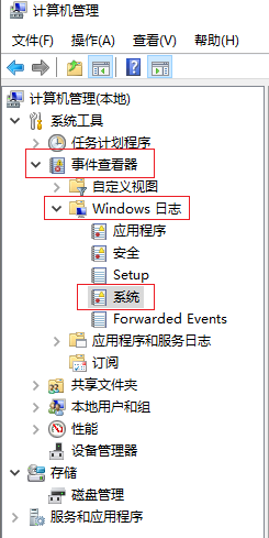 2.進入計算機管理界面,在左側依次點開【事件查看器】-【Windows日志】-【系統】。