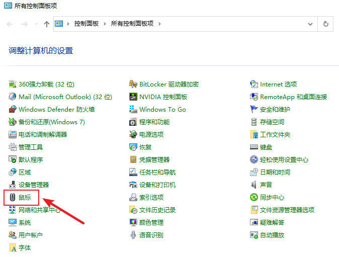 2.進入后,點擊【鼠標】。