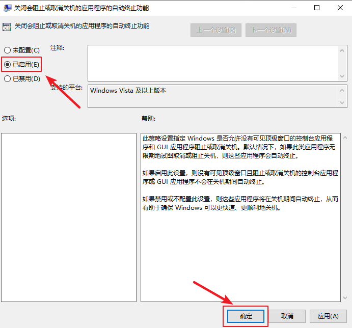 3.在彈出的界面中,選擇【已啟用】,然后點(diǎn)擊【確定】即可。