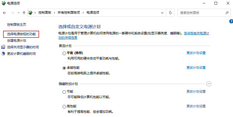 3.點(diǎn)擊【選擇電源按鈕的功能】。