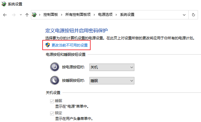 4.點(diǎn)擊【更改當(dāng)前不可用的設(shè)置】。