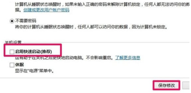 6.把【啟用快速啟動】前面的勾取消掉,然后點(diǎn)擊【保存修改】即可。