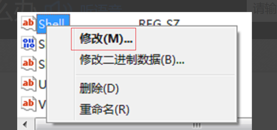 3.接著在右側找到并右鍵【shell】,選擇【修改】。