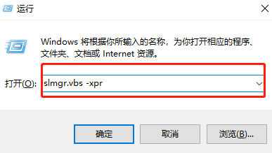 1.在鍵盤上按下“win”+“R”按鍵,調(diào)出運行窗口,隨后輸入命令“slmgr.vbs -xpr”,最后點擊“確定”。