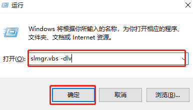 3.如果覺得提示消息不夠詳細的話可以再次打開運行窗口,輸入命令“slmgr.vbs -dlv”后點擊“確定”。