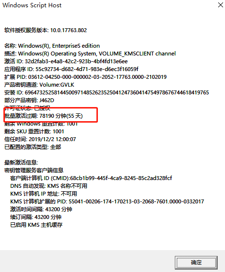 4.此時電腦就會彈出更為詳細的窗口,我們可以看到最為詳盡的激活信息。最后點擊“確定”將窗口關(guān)閉即可。