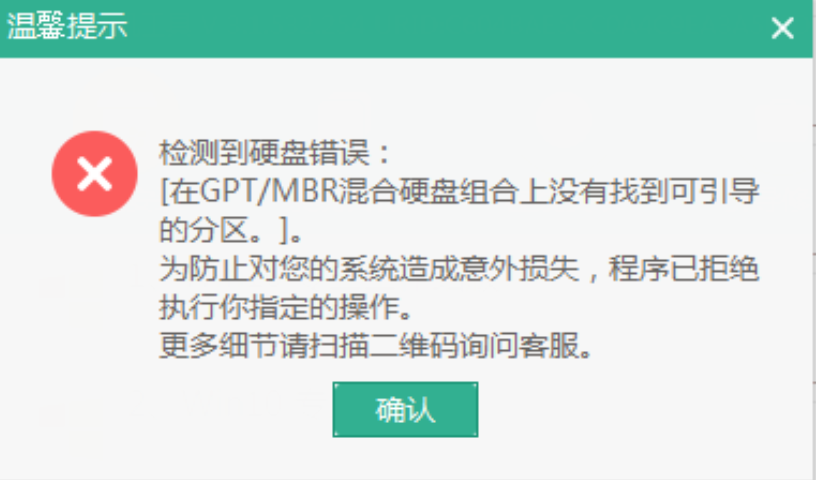 出現原因:在兩塊或者多塊硬盤上,存在GPT分區表+MBR分區表兩種格式硬盤,但均為搜索到可用的引導分區。
