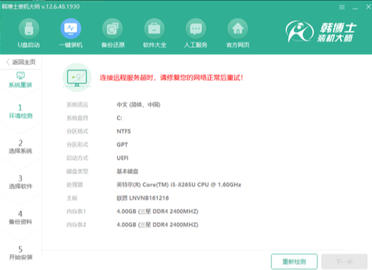 3.U盤啟動(dòng)盤也無法進(jìn)行制作,則更換其他網(wǎng)絡(luò),再嘗試一鍵裝機(jī)或者制作U盤啟動(dòng)盤。
