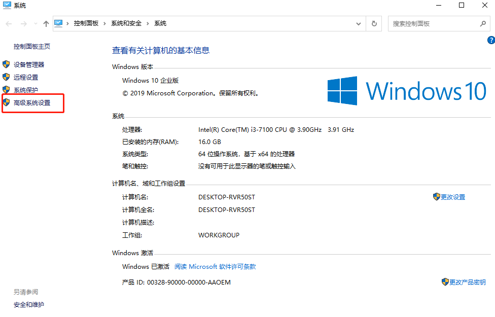 2.此時在打開的窗口中點擊左側“高級系統設置”進入,如圖所示: