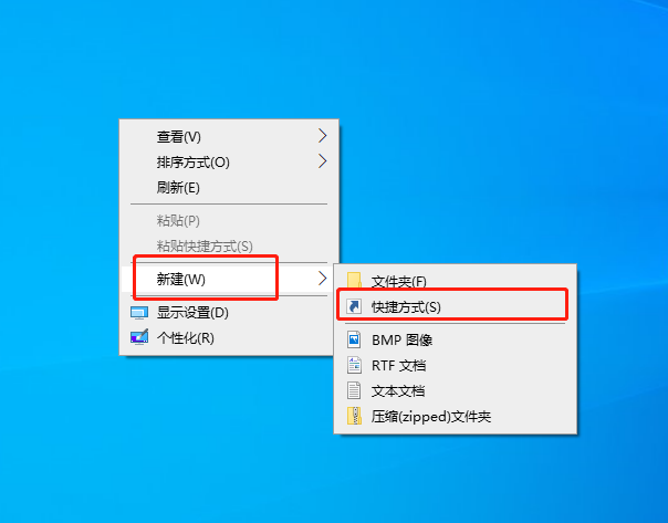 1.右鍵點擊桌面空白處并選擇“新建”-“快捷方式”。