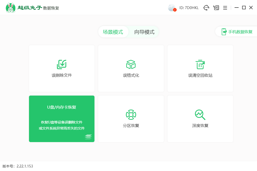 1.打開超級兔子,在場景模式下選擇U盤/內存卡恢復。