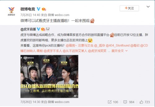 虎牙與微博達(dá)成戰(zhàn)略合作:共同打造可持續(xù)共贏內(nèi)容生態(tài)近日,虎牙直播宣布與微博達(dá)成戰(zhàn)略合作。作為微博的首家官方合作游戲直播平臺(tái),虎牙直播在第一階段合作中,將安排12位各品類的頭部主播嘗試通過(guò)微博同步直播內(nèi)容,屆時(shí),粉絲們可以在微博上觀看直播內(nèi)容并可以直接