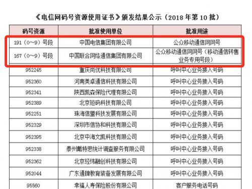 工信部放出新電信網碼號:聯通167號段,電信191號段本月三大運營商仍在“提速降費”,并且取消了本地流量制,改為全國流量,讓用戶享受到滿足。現在最新消息,聯通獲得167虛商號段,可足夠為知名企業提供“互聯網套餐”服務;而電信則獲得191的新手機號段。據消