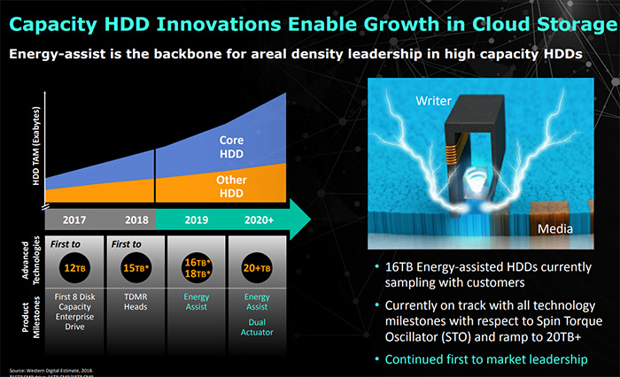 西數16TB MAMR硬盤已出樣,2020年20TB硬盤不是夢西數公司同樣也會給 HDD 硬盤續命,他們也出樣了 16TB 容量的新一代 HDD 硬盤,今年還會正式推出 16TB、18TB 的 HDD 硬盤,2020 年及之后 20TB 及以上的 HDD 硬