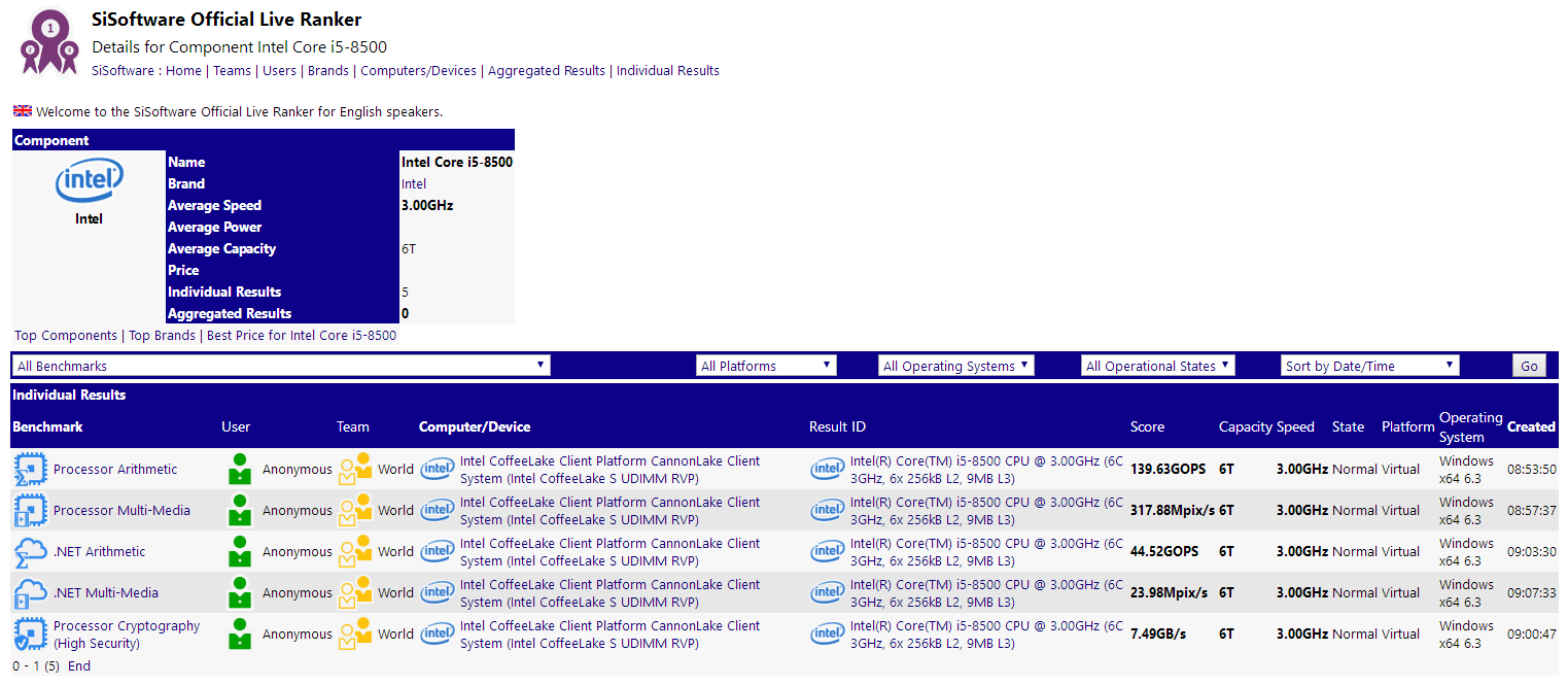 日前,在Sandra數據庫中出現了一款新的酷睿i5 CPU,型號為“Core i5-8500”。從型號上來看的話,應該是i5-8400的升級版。從數據庫中出現的數據來看,新款i5-8500依然是6核6