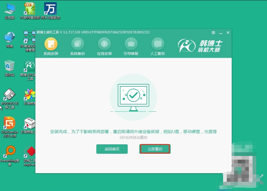 5.系統正在進行安裝,期間請不要做其他操作。耐心等待,直到安裝結束后,別忘了點擊“立即重啟”。