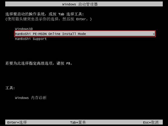 6.在當(dāng)前界面,您可以使用“↑”和“↓”鍵瀏覽不同選項(xiàng)。選中第二個選項(xiàng)后,按回車鍵,系統(tǒng)將自動引導(dǎo)您進(jìn)入PE模式。