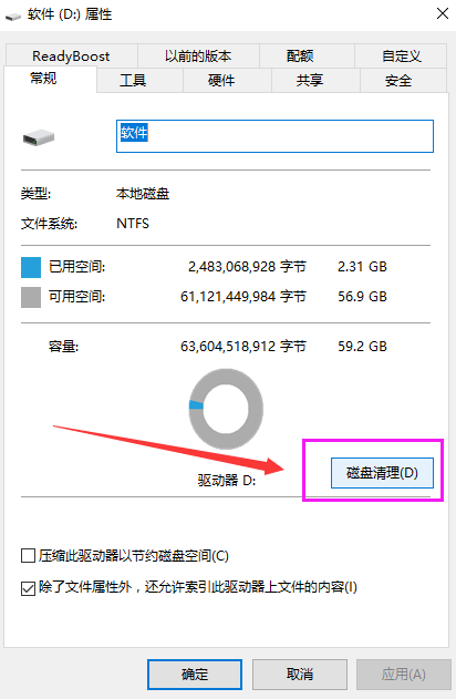 4.右鍵電腦C盤(pán)打開(kāi)屬性窗口,直接進(jìn)行磁盤(pán)清理。