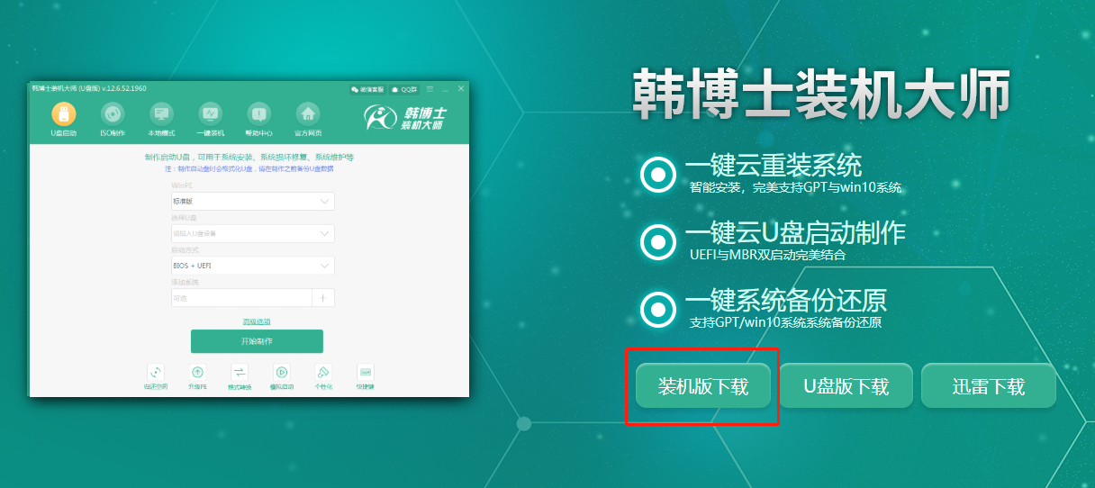注:提前下載好韓博士裝機工具(裝機版),打開前退出所有殺毒工具。下載地址:http://m.gzppe.cn/