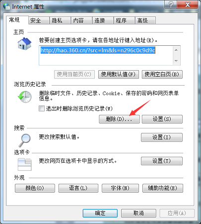 2.在彈出來的設置頁面中,點擊【刪除瀏覽歷史記錄】。