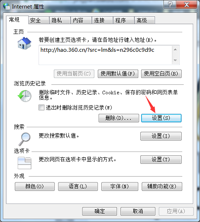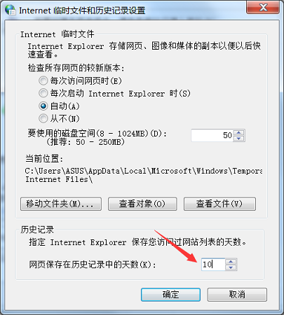 3.然后再點擊【設置】,在【網頁保存在歷史記錄中的天數】那改為10天,防止內存滿了,最近點擊【確定】即可,這樣再重新打開網頁就完整了。