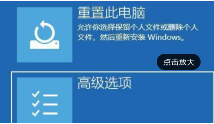 1.使用電源鍵重啟電腦,重啟幾次之后會進入系統修復界面,點擊【高級選項】。