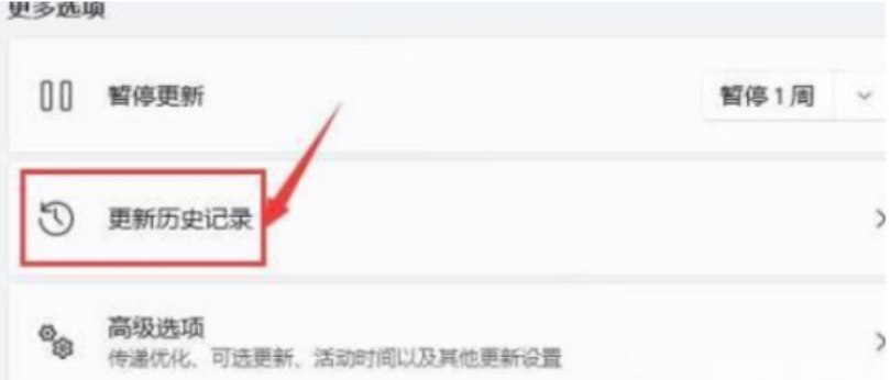 5.然后在安全模式中進入windows更新,選擇【更新歷史記錄】。