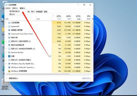 2.進入任務管理器后,點擊左上角的【文件】,選擇【運行新任務】。
