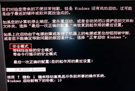 1.重啟電腦,按F8跳轉到高級啟動頁面,選擇“安全模式”。