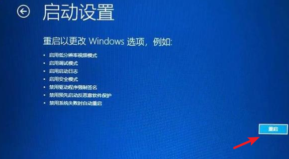 3.進入“啟動設(shè)置”頁面后,點擊右下角的“重啟”。