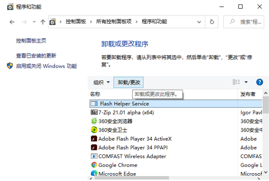 3.進入安全模式之后,點擊“程序和功能”,可以看到最近下載的軟件或者更新,把這些都卸載或刪除掉,再次重啟電腦即可。