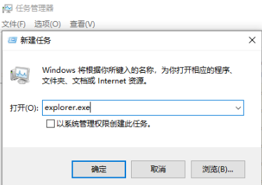 3.接著系統彈出新建任務窗口,需要輸入“explorer.exe”,然后再點擊“確定”按鈕。運行結束后,就會成功出現win11桌面。