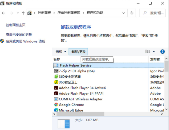 3.在安全模式內(nèi),打開“控制版面”,進入“卸載或更改程序”界面,然后找到近期安裝的軟件或者更新,全部卸載刪除,再次重啟電腦即可解決win11藍屏問題了。